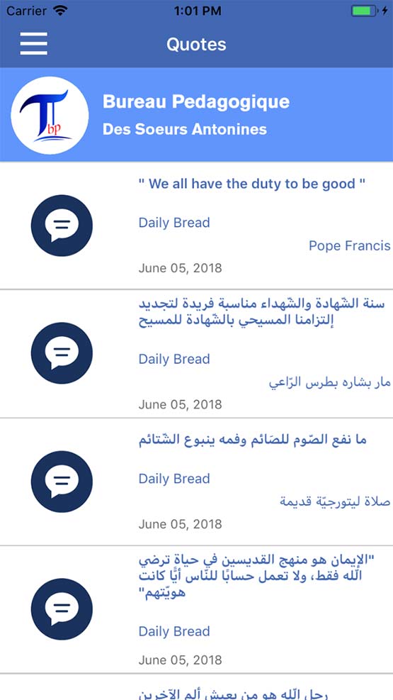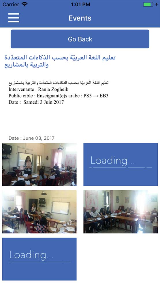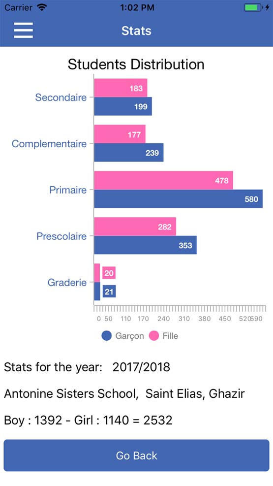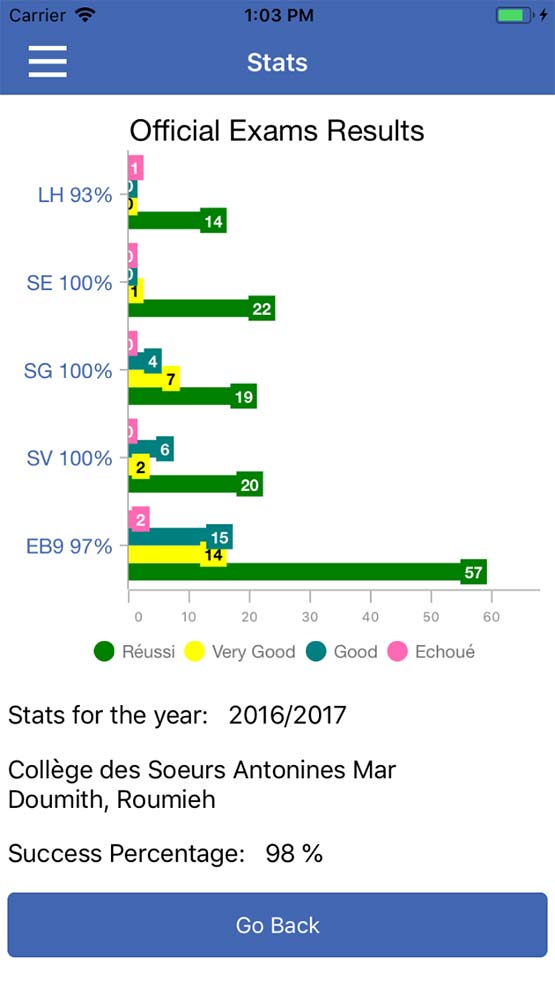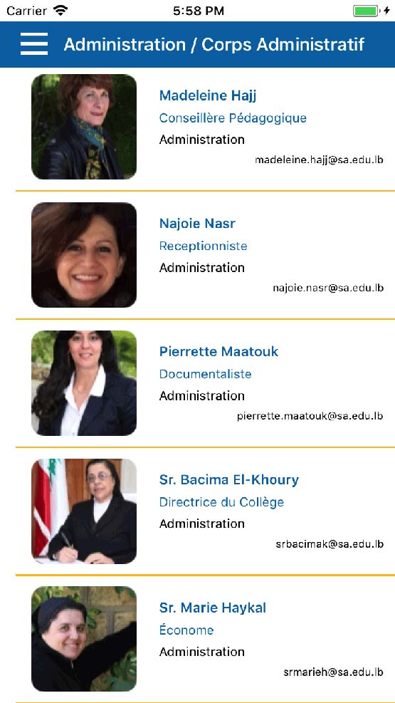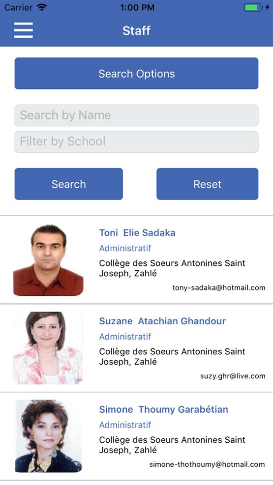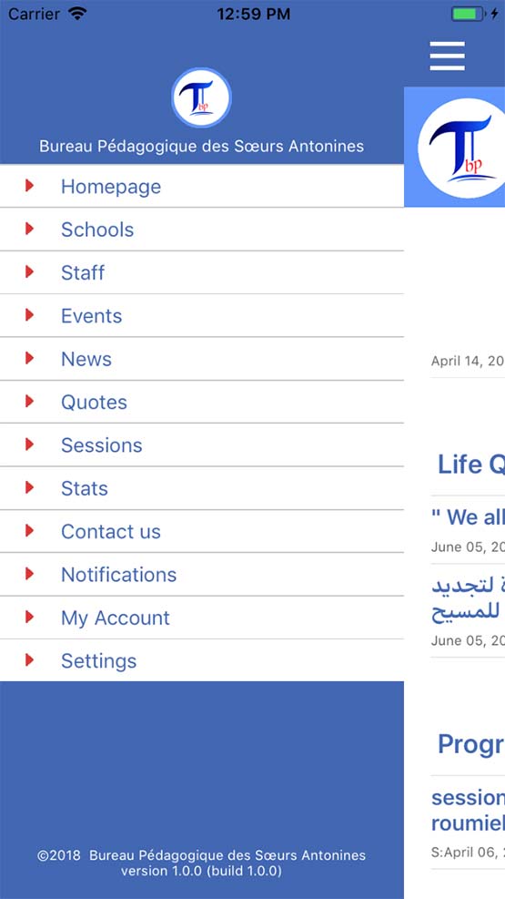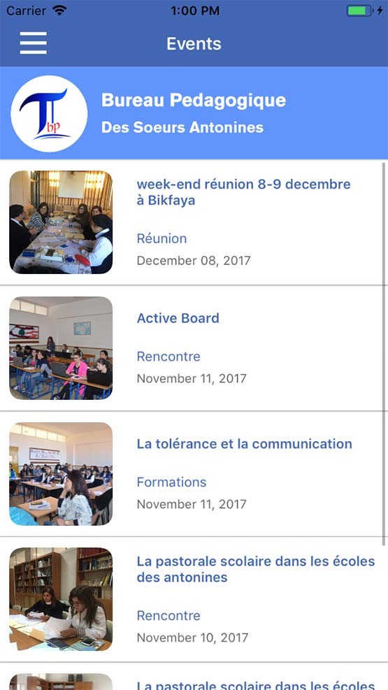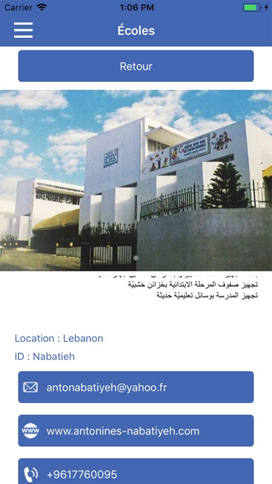 Soeurs Antonines school had an existing website. However it needed to expand its mobile app so it includes all the website sections and media publications, a key feature is an agenda integrated inside the app where the parents and students can see the daily homework and the teacher can post the tasks and the schedule. The parent's section also includes grades and financial statement.